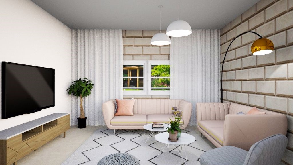 ורוד פודרה עדין, אפור, לבן ועץ.