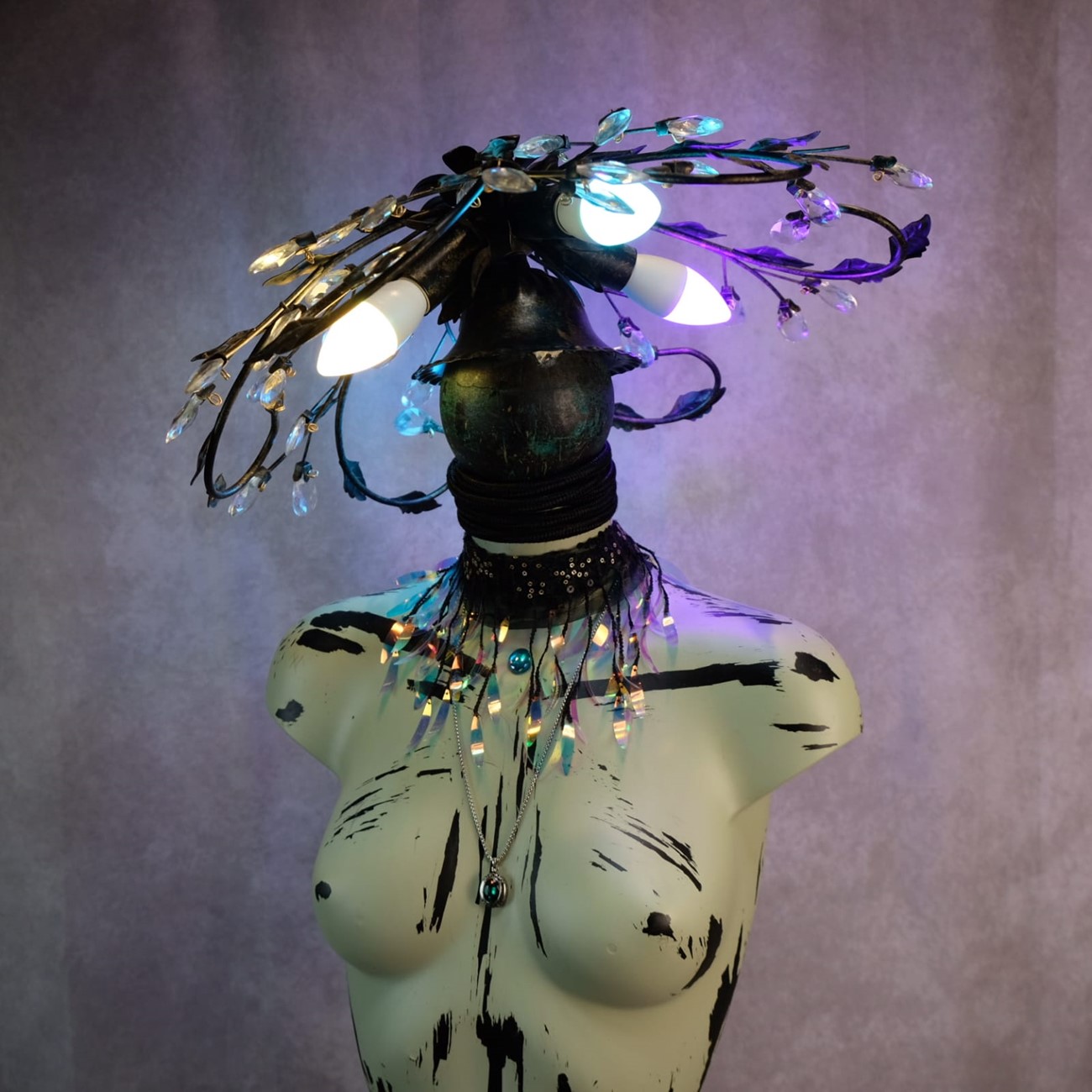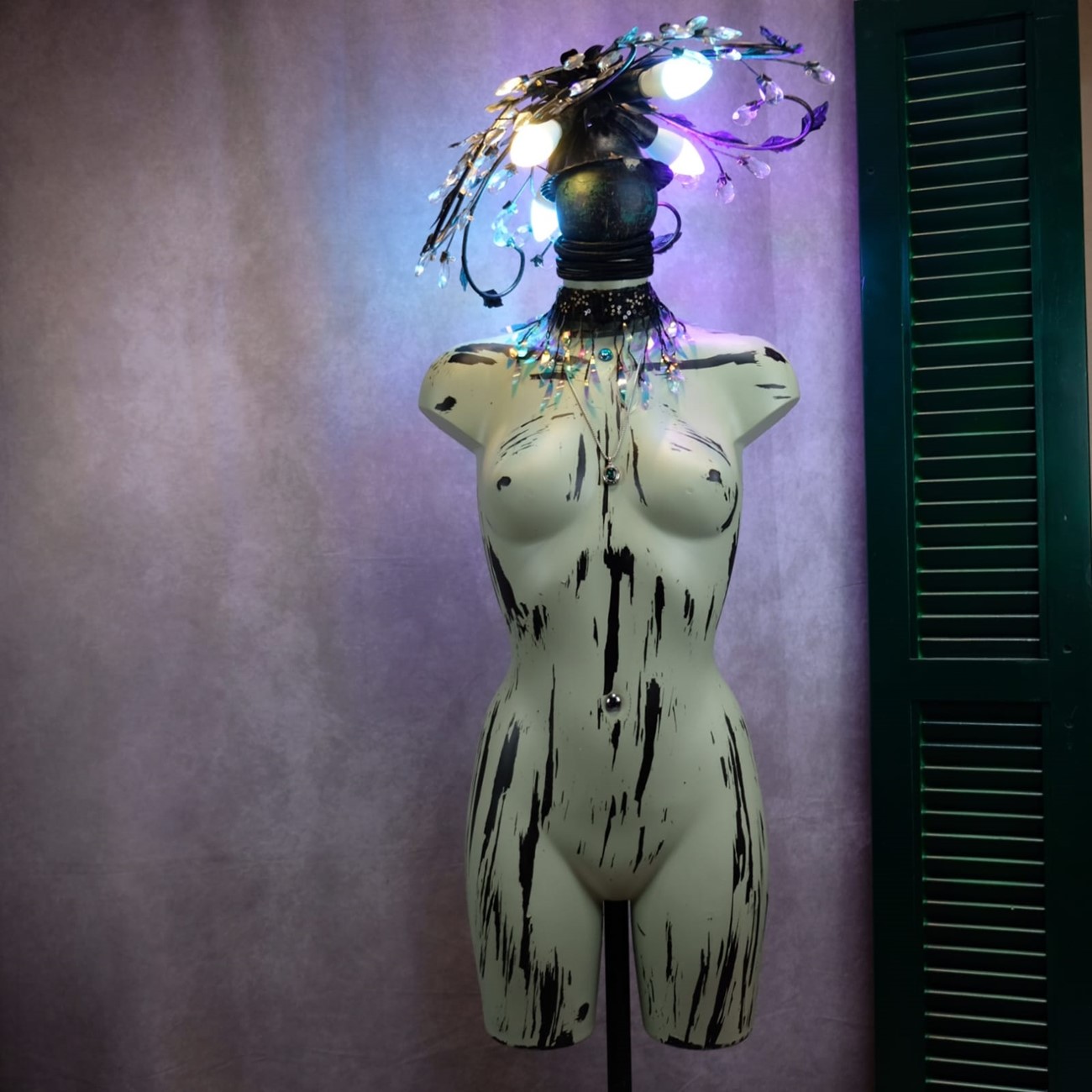 בובת חלון ראווה בצביעה אומנותית בשילוב גוף תאורה בשערה