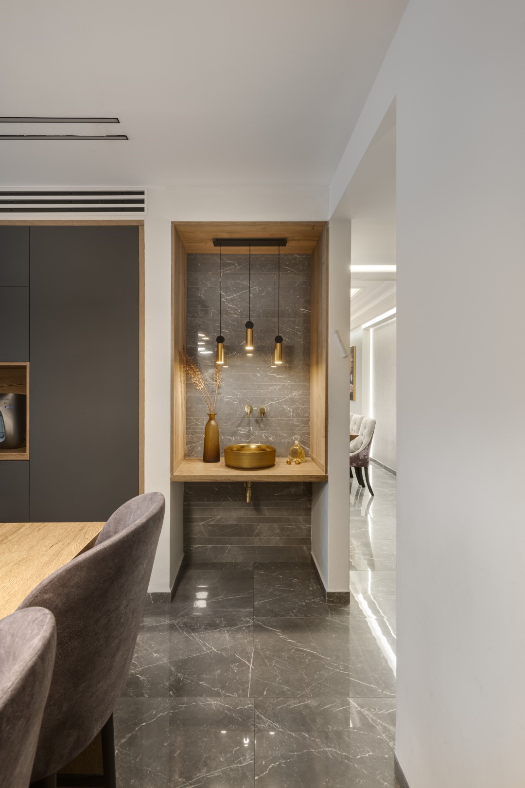 ממוקם בין פינת האוכל באזור הסלון לכניסה למטבח לנוחות האורחים והמארחים, המשמש במיוחד בשבתות וחגים ובזמני אירוח.