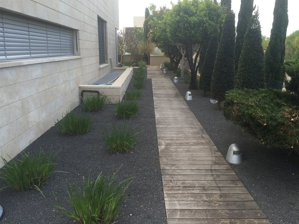 אז הרסתי את הדק ,ריצפתי באריחים 100*100 ס"מ שתלתי צמחים מעוצבים יפים .