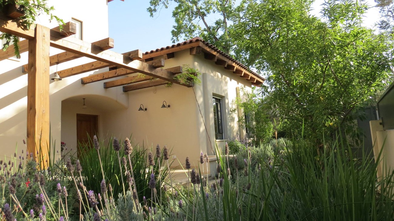 ביתם בעל מראה כפרי מעודן ,טבול בצמחיה עשירה של צמחי ריח ותבלין ובוסתן שופע פרות .