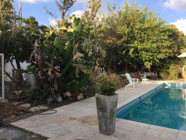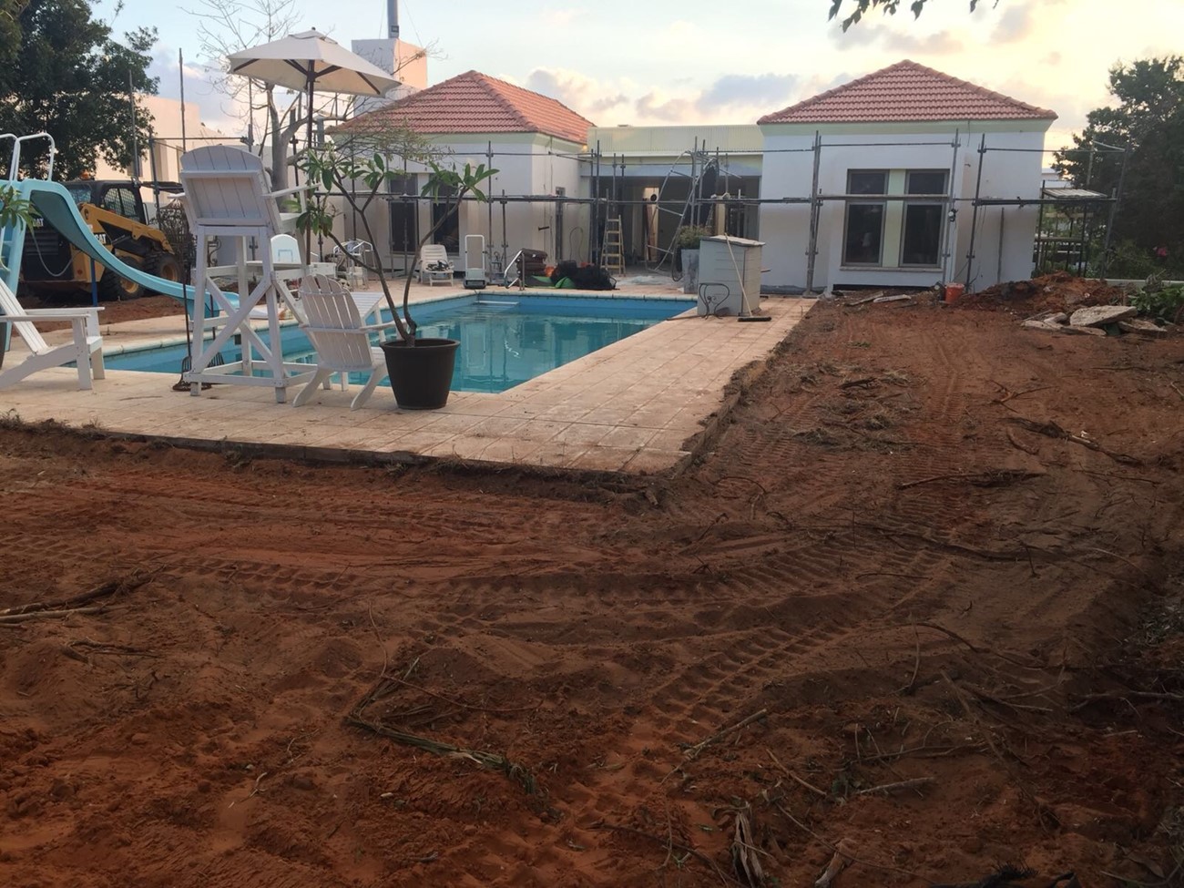 לאחר ניקיון יסודי של החצר הכנת תשתית פיתוח ודישון על ידי הגנן .נבנה מטבח חיצוני גדול מצידה הימני של הבריכה ,ומצידה השמאלי תוכננה פינת ישיבה מוצלת לאכילה .