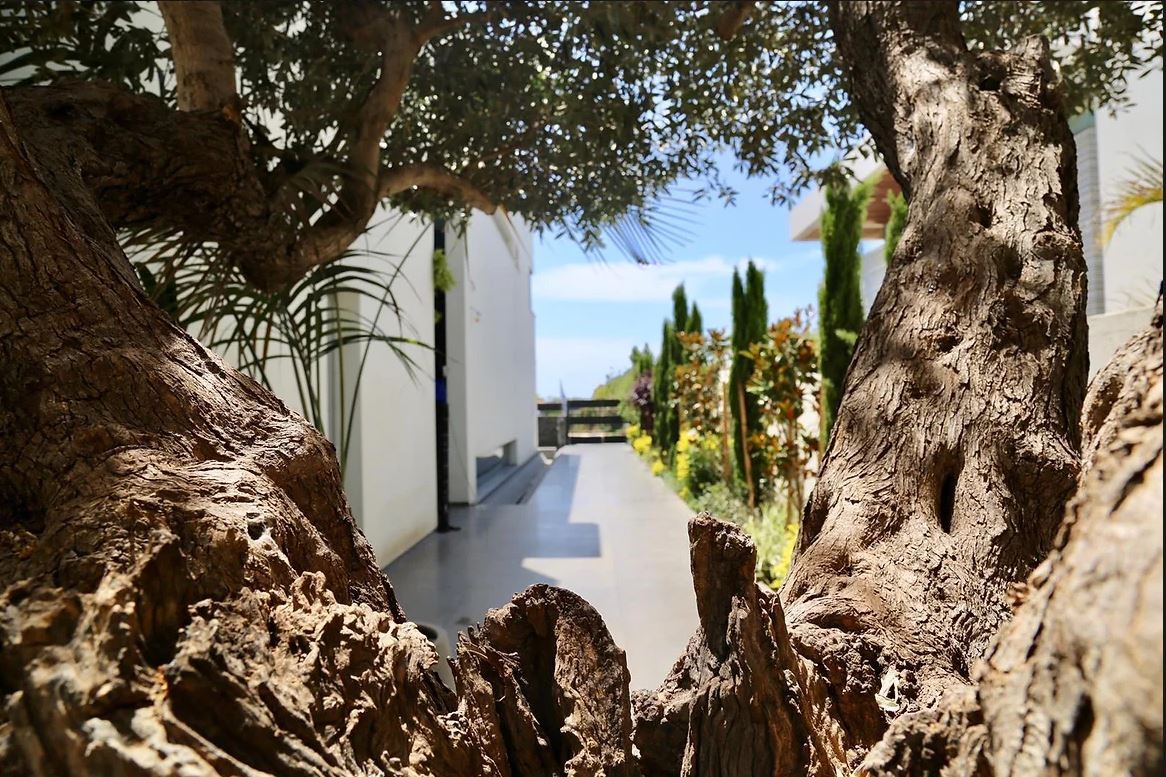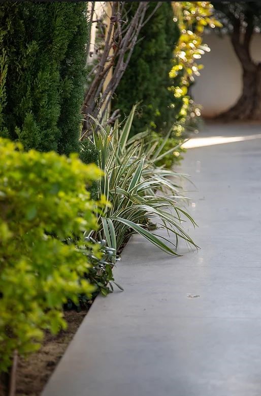 שביל הכניסה הארוך עוצב עם צמחיה ים תיכונית מגוונת בצבעי עלווה. מספר עציי טוטם נעקרו לשבור את החדגוניות שבשדרה .