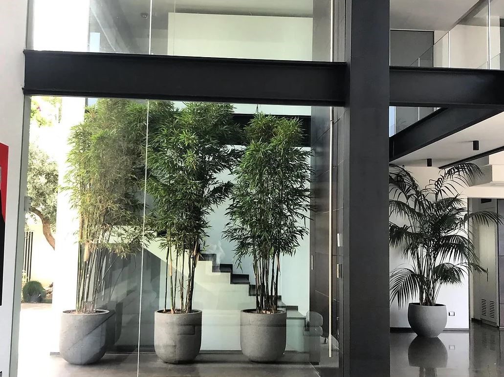 ולהשלמת המראה, מוקמו בפנים ומחוץ לבית מיכלים גדולים בהם נשתלה צמחיה פיסולית.