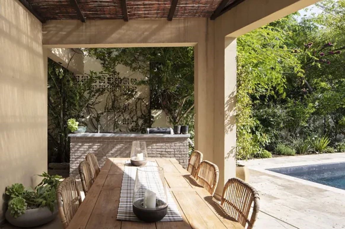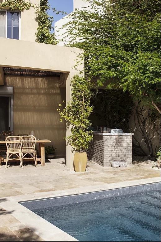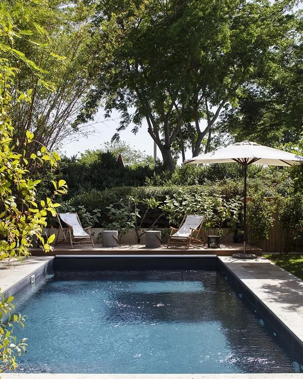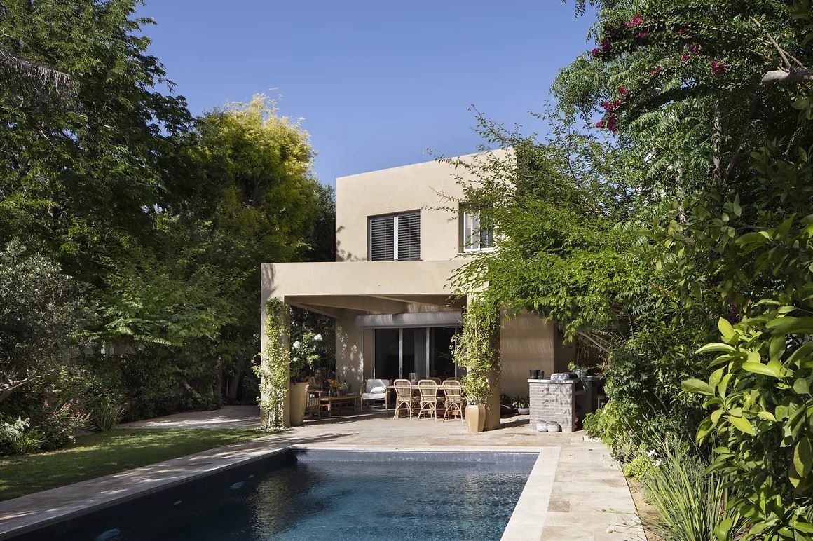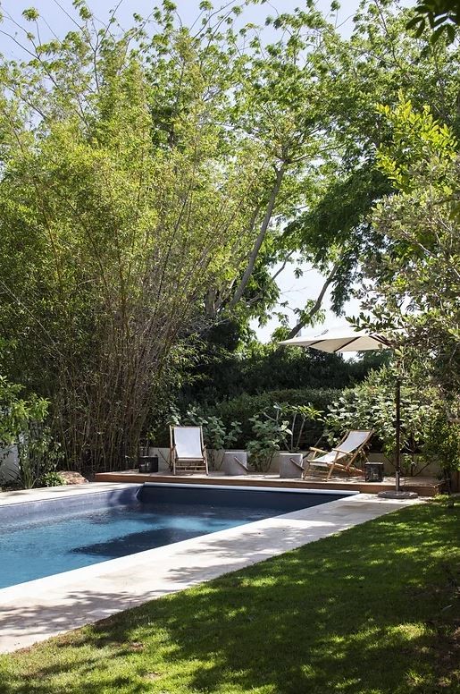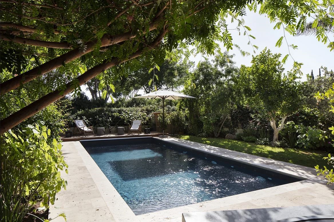 בסופו של שביל ההקיפי הארוך ניגלה מרחב אינטימי של בריכה ,פינות אירוח , מטבח חיצוני ומקלחת ושירותים.