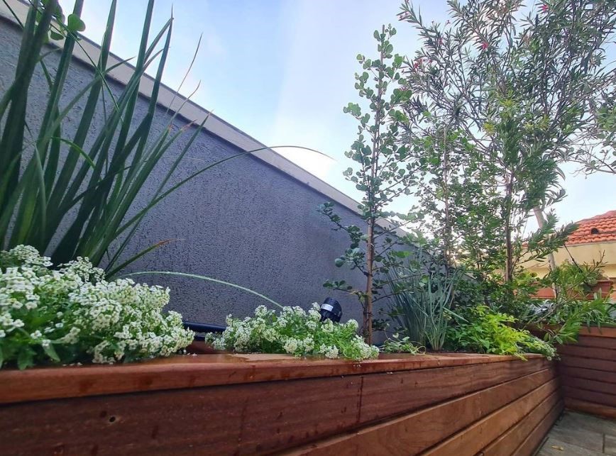 אדנית בחיפוי סרגלי עץ איפאה , בעלת יריעת איטום איכותית שמולחמת לפי מידה