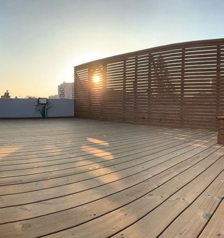 דק וגדר אורן על גג , יצירת פינת ישיבה ואתנחתא על גג הבית