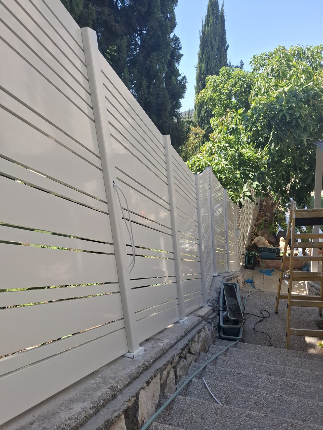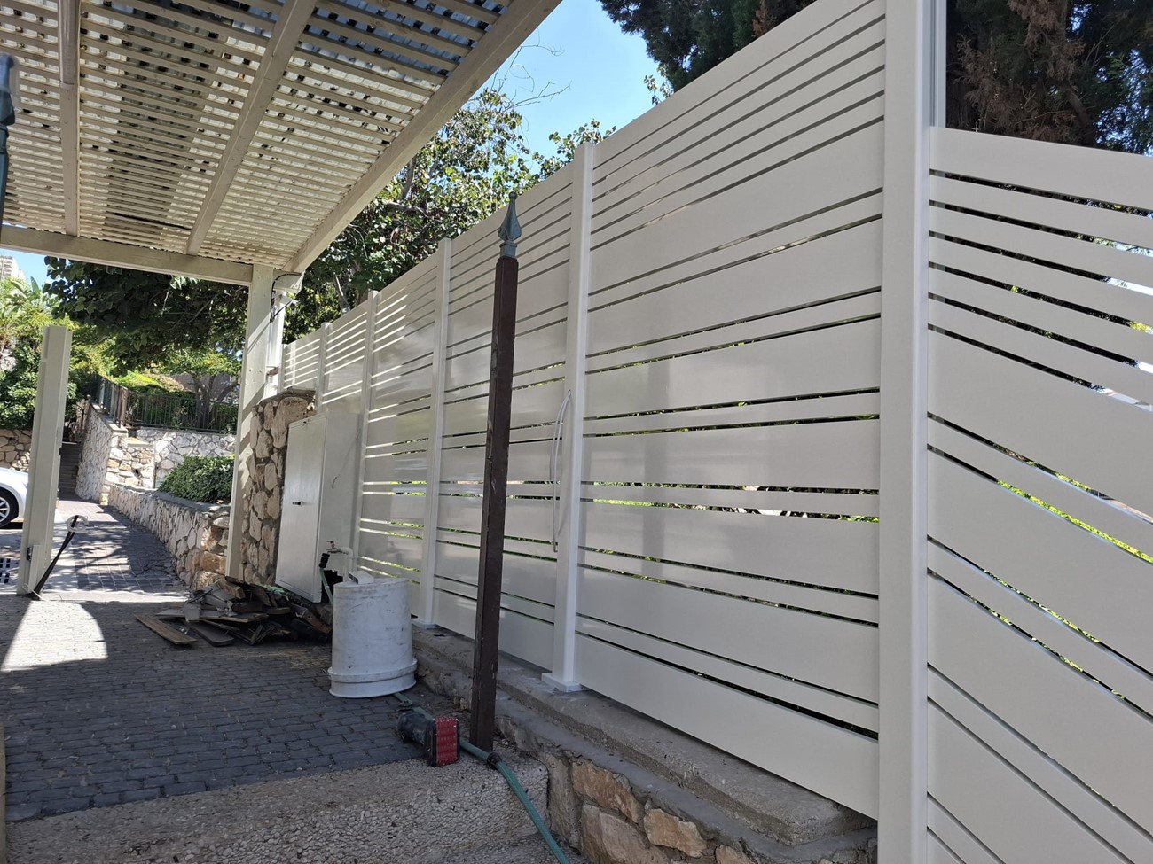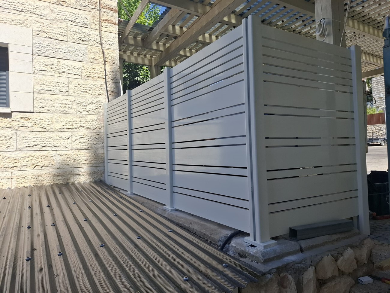 גדר הקפית וילה ביוקנעם 42מטר מרווחים של ס"מ עם פרופילים במידות שונות