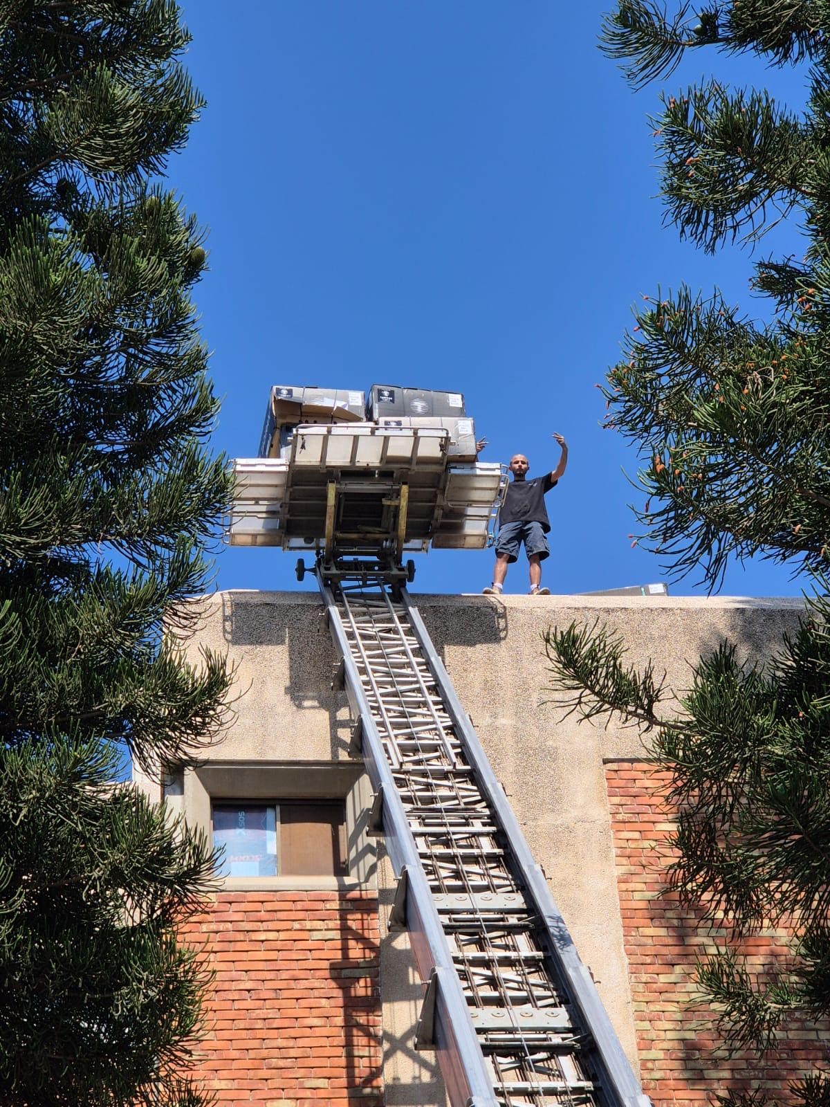 פרויקט מיזוג 4 מזגנים מרכזים 6 כוח סוס של חברת תאדירן כולל במת הרמה עם ג׳ק