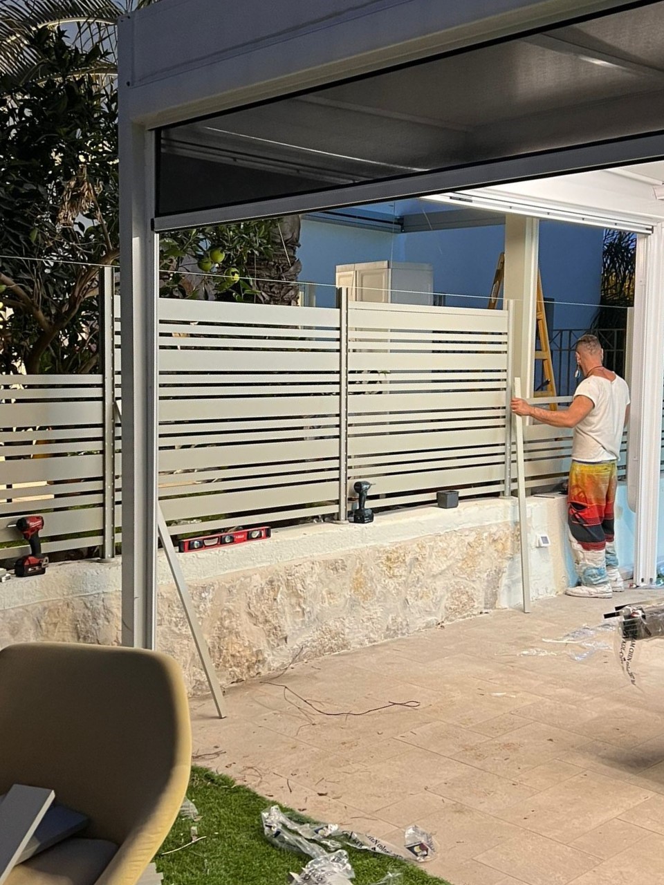 ייצור והרכבה פרגולה ביוכלומטיק שלש מנועים וארבע מסכי זיפ