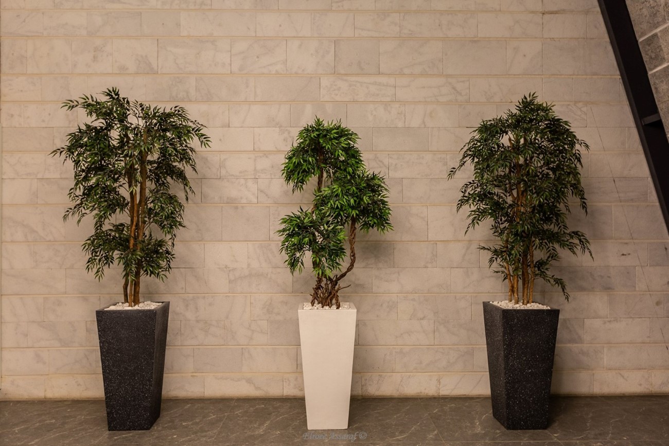 בשילוב כדים ועצים מעוצבים ואלמנט התאורה המיוחדת, העיצוב יצא אלגנטי, שלם ומיוחד.