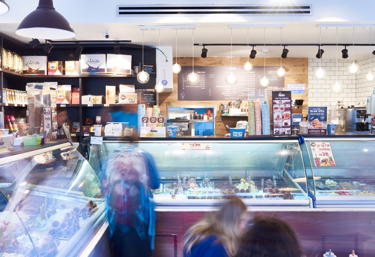 היה לי העונג לעבוד מול מוטי הנפלא . יזם בתחום המסעדנות . לפני כן החנות שימשה כמסעדת בשרים מיושנת , תהליך ההתאמה שלה לגלידריה בעידן המודרני ובעיקר להפיח בה חיים צבעוניים היה רבוי אתגרים כיפיים , לחנות קיים מרתף ובאופן יעיל חילקנו את שטחי הייצור ושטחי האחסון בהתאמה לשלבי העבודה שייצרו זרימה והמשכיות בתהליכים והכל כדי להמשיך לייצר ולמכור כמ שיותר גלידה משובחת