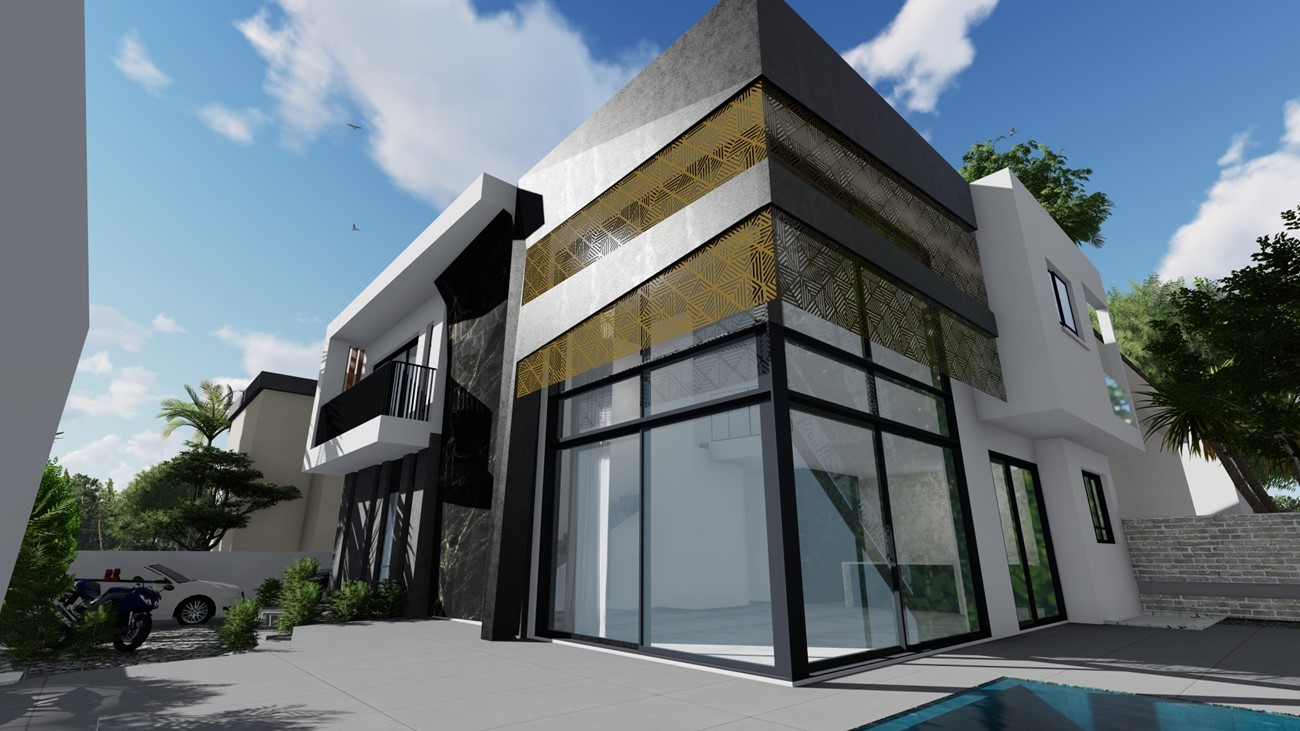 תכנון וילה יוצאת דופן עם בריכה עם תעלת גלישה היקפית , בר חוץ ליצירת מקום אירוח חוץ מושלם