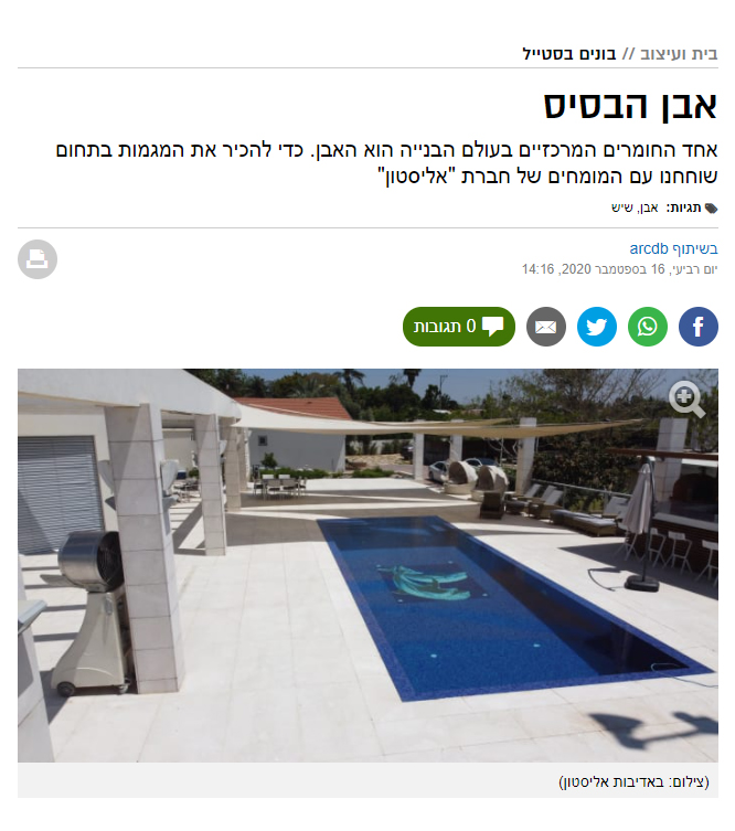 אחד החומרים המרכזיים בעולם הבנייה הוא האבן. כדי להכיר את המגמות בתחום שוחחנו עם המומחים של חברת "אליסטון"  קרא עוד >>
