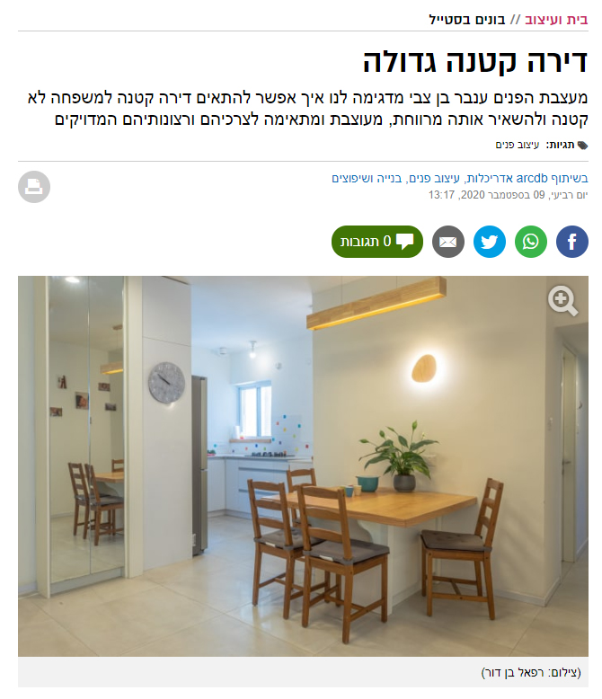 מעצבת הפנים ענבר בן צבי מדגימה לנו איך אפשר להתאים דירה קטנה למשפחה לא קטנה ולהשאיר אותה מרווחת, מעוצבת ומתאימה לצרכיהם ורצונותיהם המדויקים קרא עוד >>