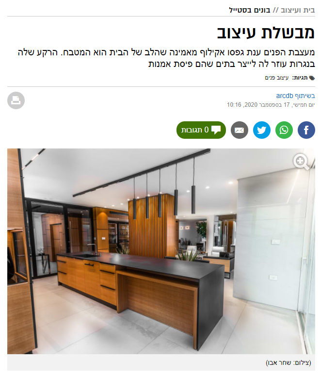 מעצבת הפנים ענת גפסו אקילוף מאמינה שהלב של הבית הוא המטבח. הרקע שלה בנגרות עוזר לה לייצר בתים שהם פיסת אמנות קרא עוד >>